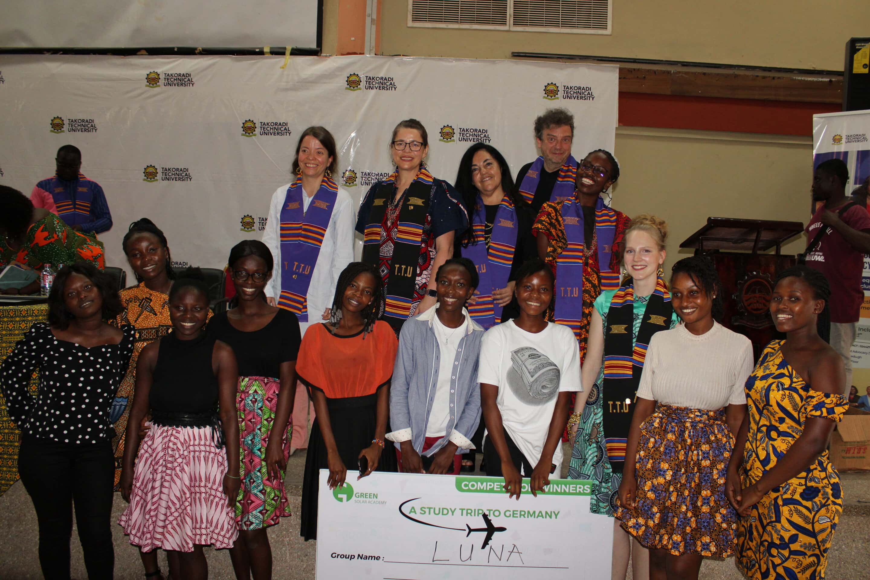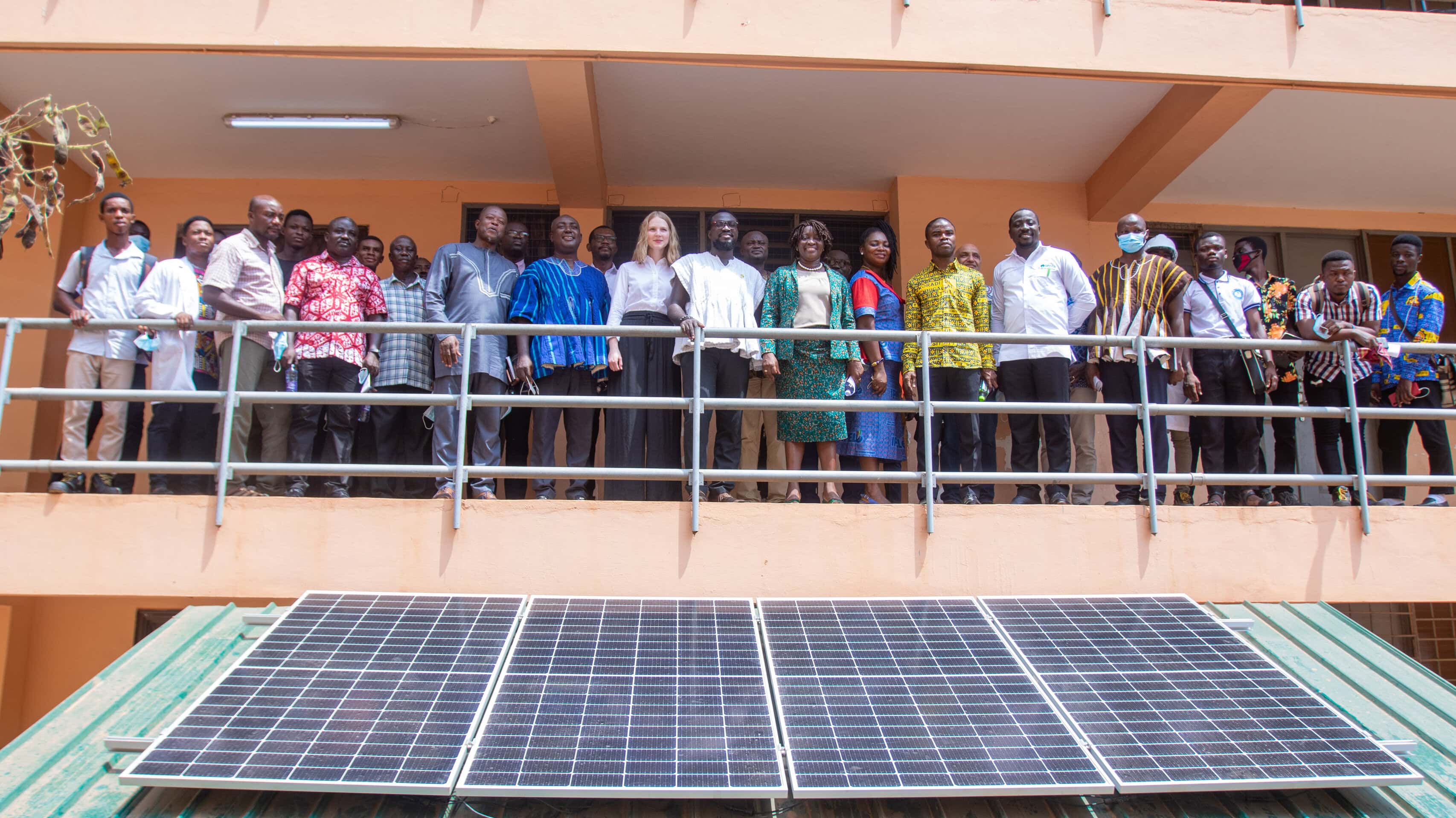 In Ghana begann das Projekt mit dem Entwurf des Solarschulungszentrums für die Technische Universität Takoradi, das mit zwei Modelldächern für PV-Systeme ausgestattet wurde. Das Zentrum wurde Anfang 2022 offiziell eingeweiht. GREEN bot ein Programm zur Schulung von Ausbildern für 30 Dozenten an und unterstützte die Einrichtung eines PV-Schulungsprogramms für B-Tech-Absolventen und Ingenieurstudenten. Darüber hinaus unterstützte GREEN die Durchführung der ersten Schulungen, damit die TTU den Kurs langfristig selbständig anbieten kann.